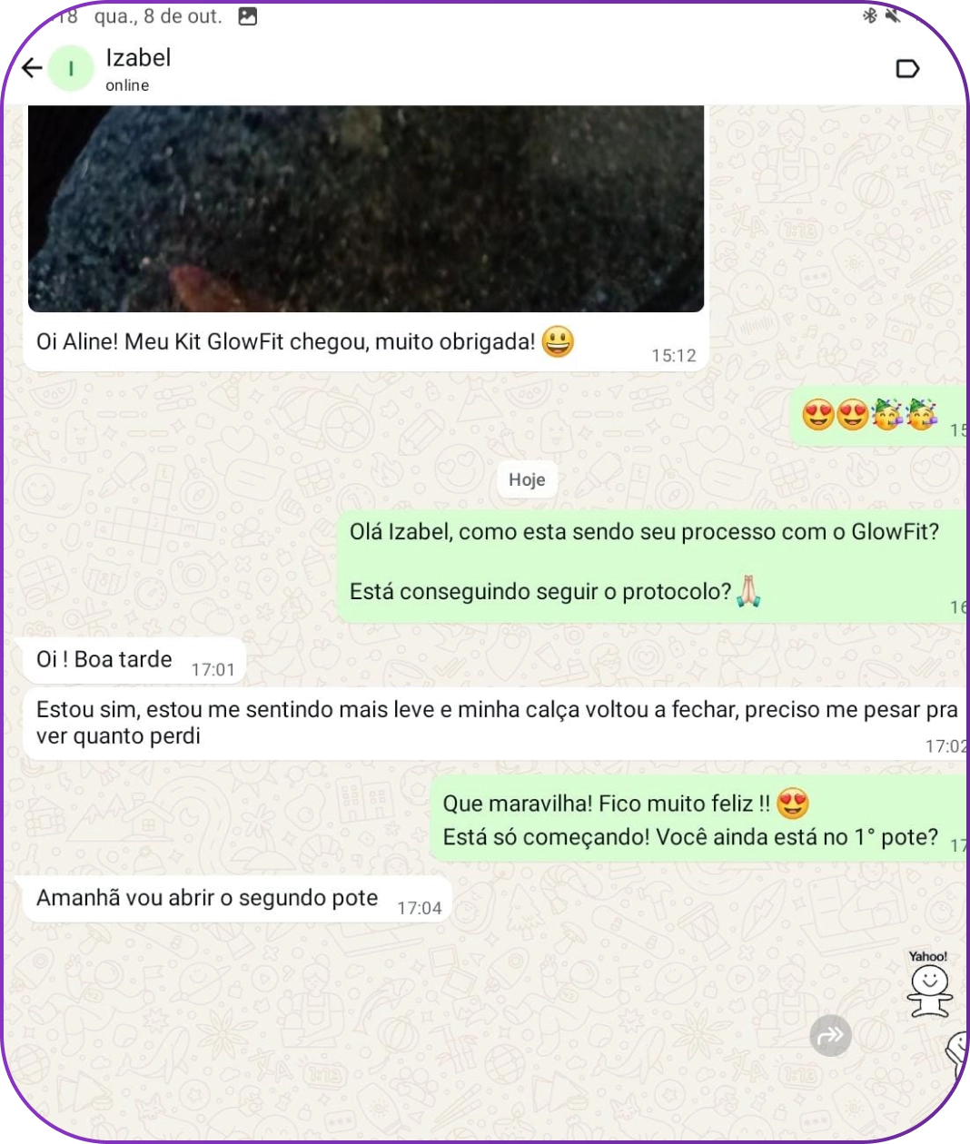 Como essa modalidade depende de logística regional, você deve clicar no botão de WhatsApp abaixo para falar com uma consultora. Ela verificará se sua região é atendida e agendará o melhor horário para você receber e pagar seu GlowFit™ em mãos.